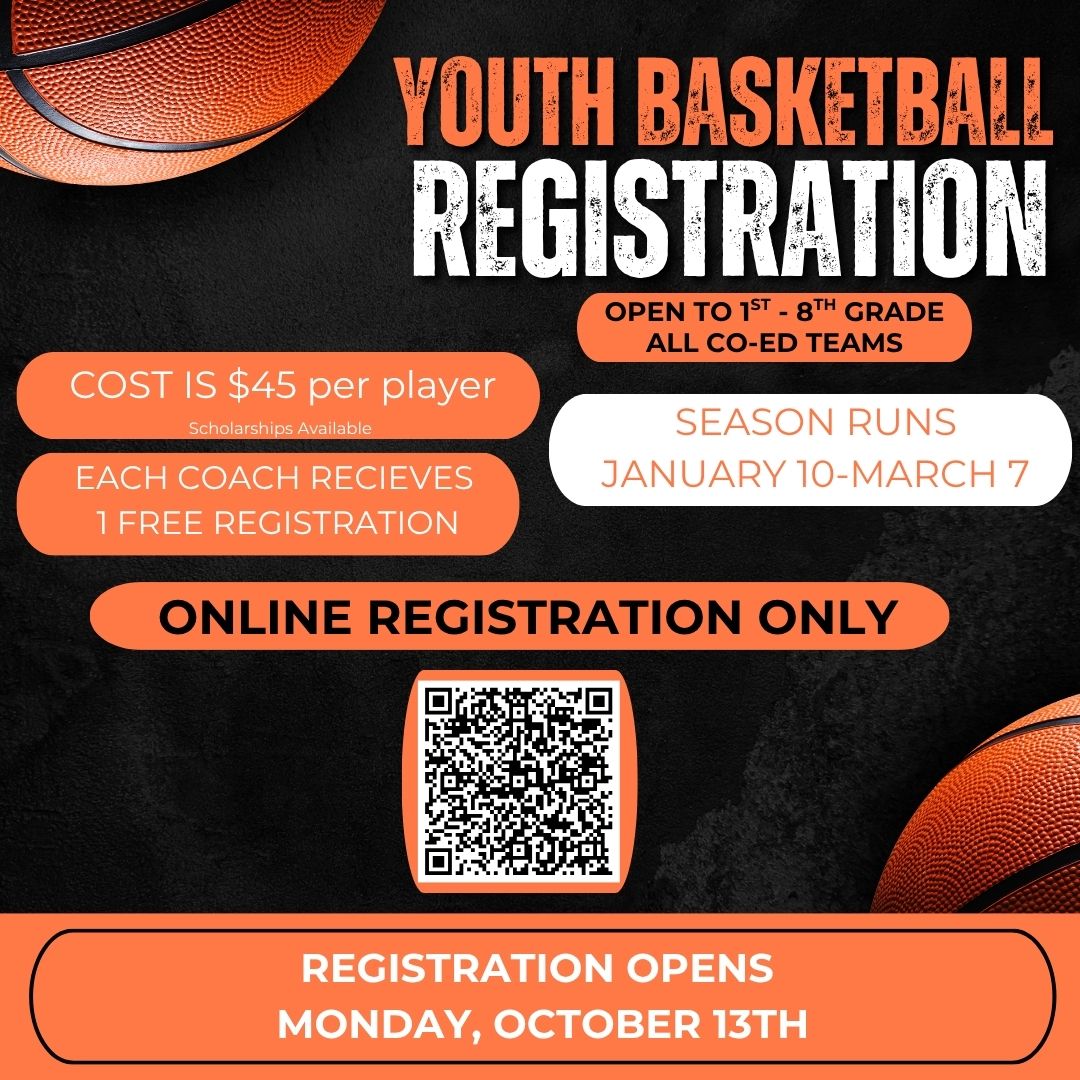 1st grade through 8th grade. Registration is $45 per player, with a $5 discount for each additional player (discount applies to siblings only). Late registration will be an additional $10.