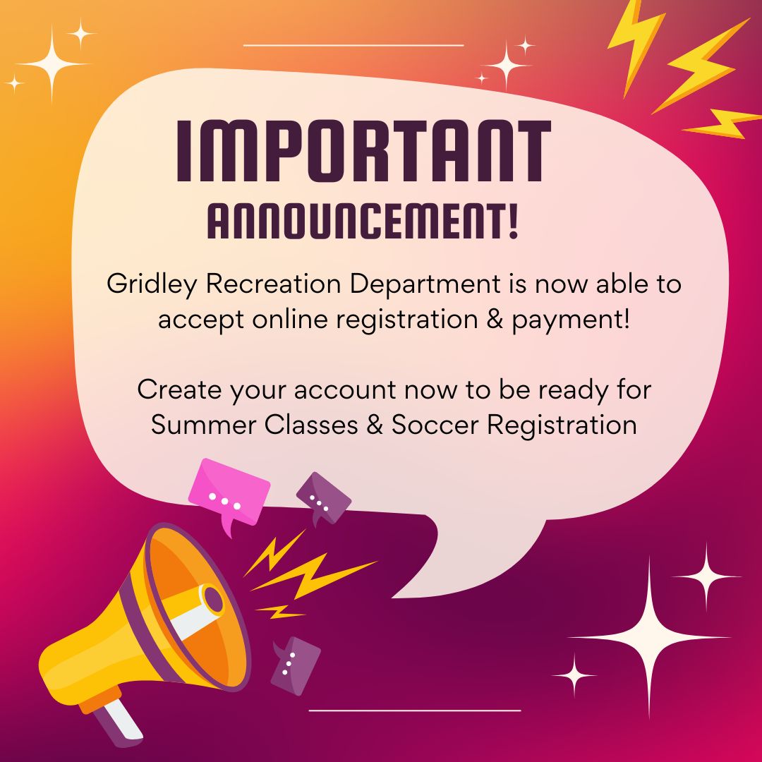 Please join our Gridley Parks and Recreation Facebook Page and stay in contact with us!